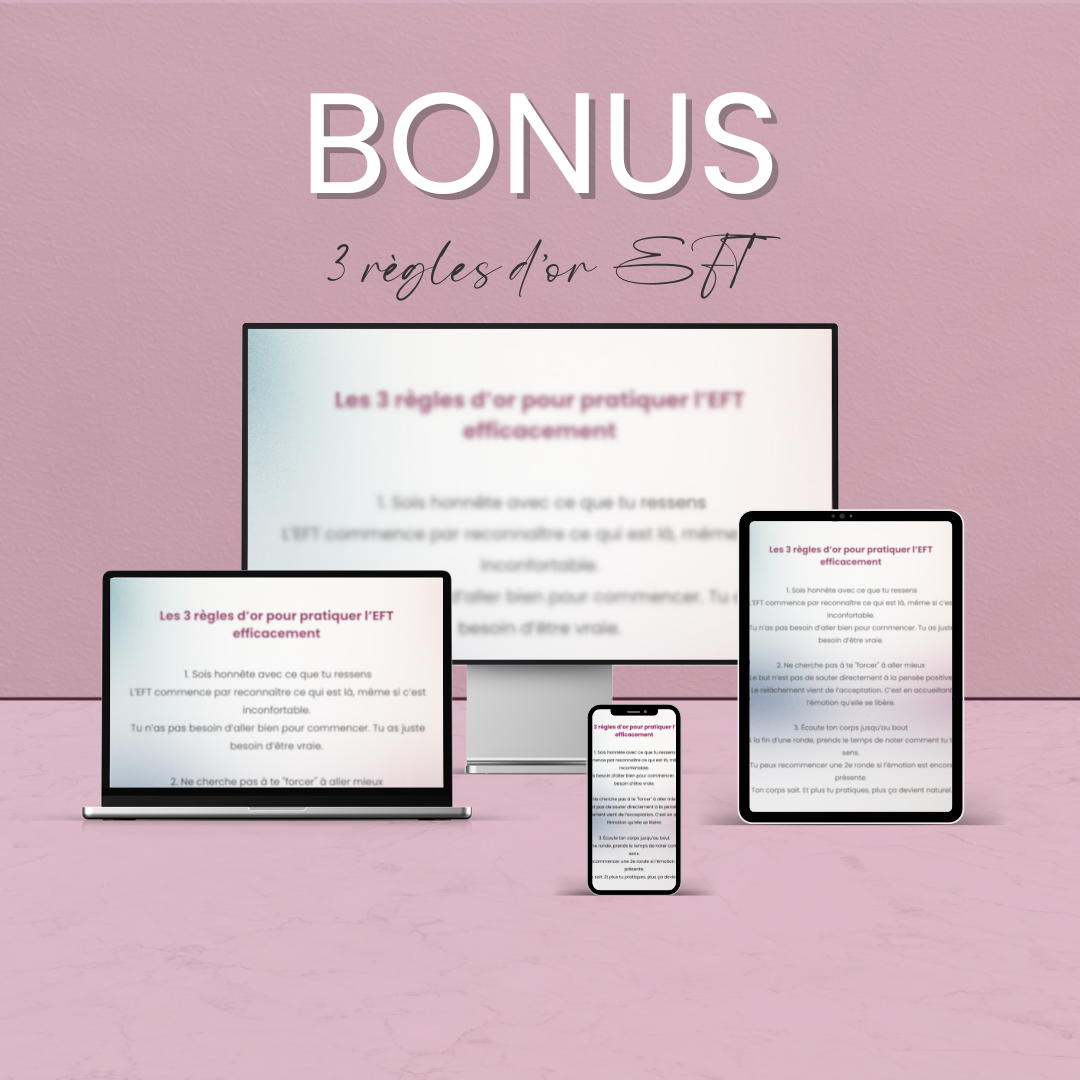 - AppliquĂ© les 3 rĂšgles dâor de lâEFT pour pratiquer efficacement, mĂȘme avec un horaire chargĂ©.